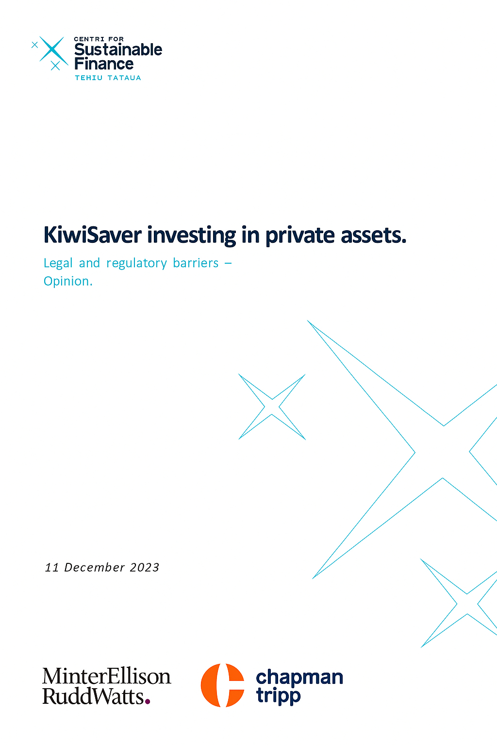 While there are no explicit legal barriers to this activity, the opinion of CSF partners MinterEllisonRuddWatts and Chapman Tripp is that there are legislative and regulatory impediments contributing to KiwiSaver’s low rates of investment into private assets.