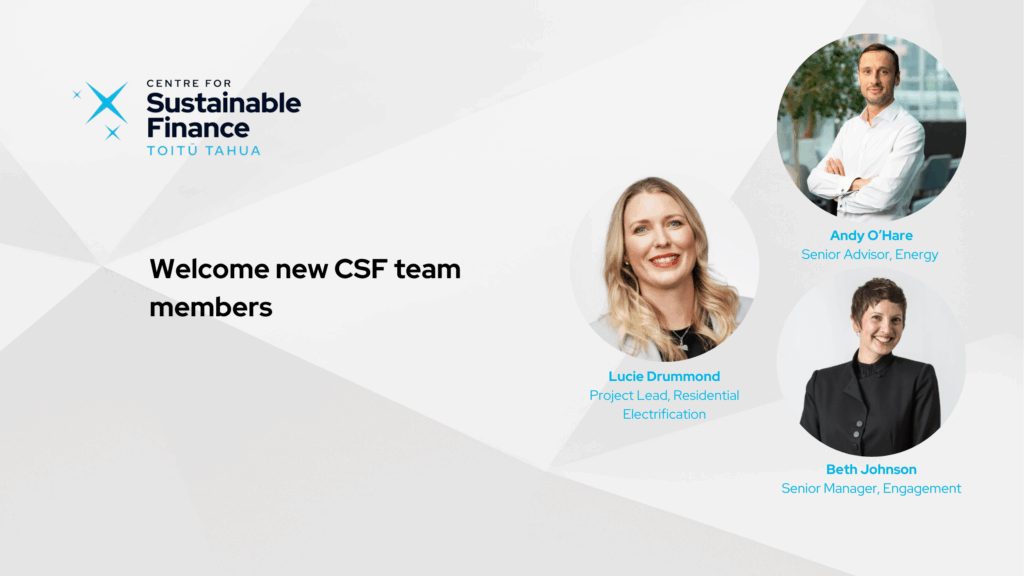 The Centre for Sustainable Finance (CSF) is pleased to be working with its partners, including major financial institutions, the Energy Efficiency and Conservation Authority (EECA) and the Ministry for the Environment, to accelerate financing solutions for abundant, affordable clean energy. Energy Minister Simon Watts has today announced a new Solar on Farms initiative, to make […]